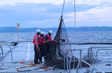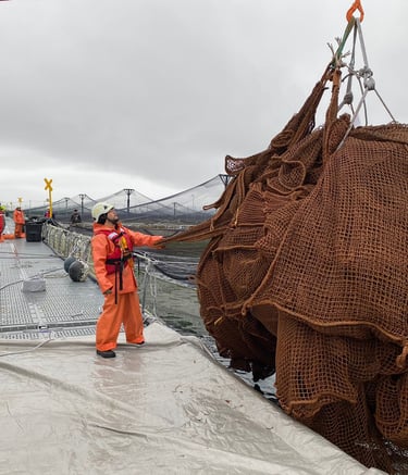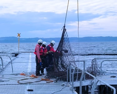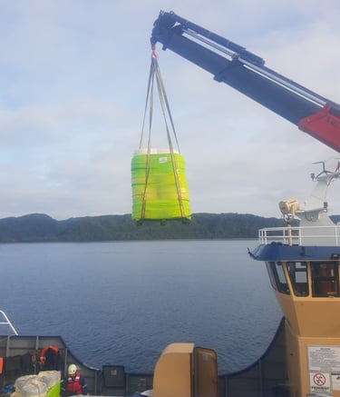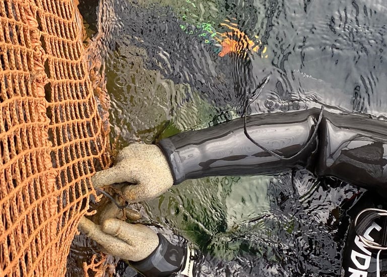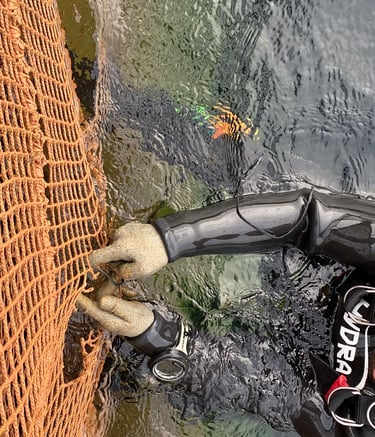 Especializados en buceo para la industria salmonera, instalación, limpieza, extracción de mortalidad y mantención de redes peceras y loberas.